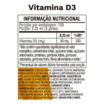 Ingredientes: Óleo de girassol, colecalciferol (Vitamina D3) e antioxidante DL-alfa-tocoferol. Composição da cápsula: gelatina, água purificada e umectante glicerina. Não contém glúten. Não contém lactose.